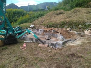 上記の写真では実際に墓じまいをしているところで、お墓だけではなく下の基礎部分まで撤去工事しました。