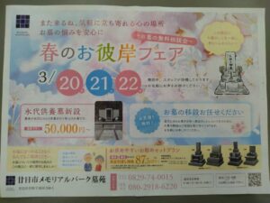 お墓の無料相談会をされていて、弊社の廿日市店にもチラシの用意がございます。